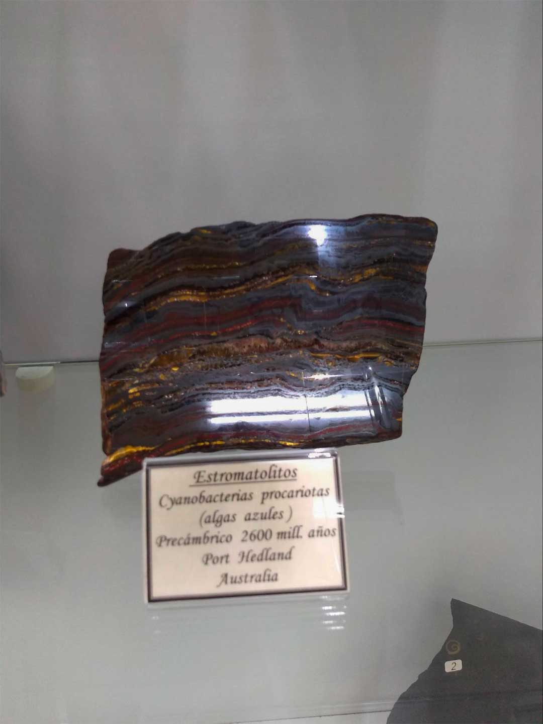 Museoko estromatolitorik antzinakoena duela 2.600 milioi urteko ale bat da, Aurrekanbriar garaikoa (Proterozoikoa), jatorria Port Hedland-en (Australia) duena. Eskualde horretako haitzek badute ezaugarri berezi bat, itsas komunitateen aztarna fosilduak dituzte (estromatolitoak), oso antzinako zianobakterioek osaturikoak, bandatan antolatutako burdinazko formazioekin batera.