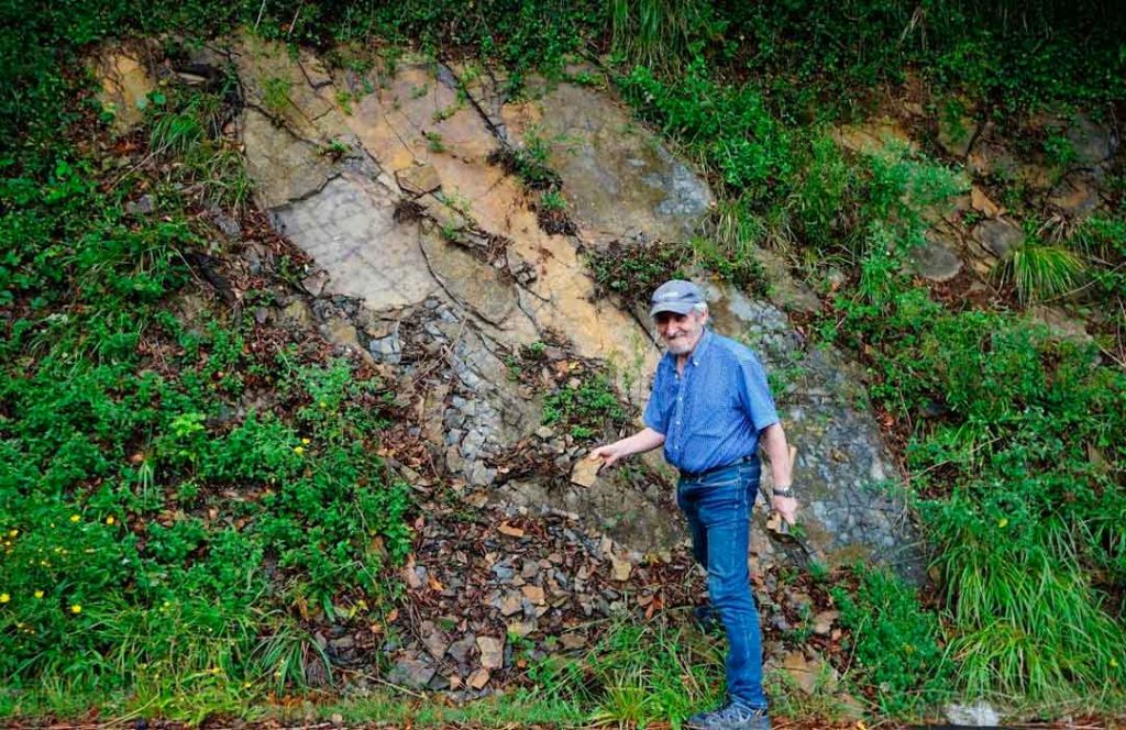 Como ya comentaremos en próximas noticias, hace ya varios años un vecino de Elgoibar recogió en las inmediaciones de la carretera que comunica Elgoibar con el barrio de Idotorbe unas curiosas muestras de un mineral sobre matriz de cuarzo. Este mineral resultó ser fluorita de un vistoso color morado. Nuestro fiel colaborador Igor Lasuen enterado de tal noticia se puso a la labor de intentar localizar el sitio en cuestión. Lamentablemente no consiguió dar con el lugar donde se encontraron las muestras de fluorita. Sin embargo sí consiguió encontrar una pequeña coquera con algunos vistosos cuarzos; y lo más importante, en una ladera erosionada del camino encontró un afloramiento de lutitas y areniscas carbonatadas con restos de plantas fósiles sobre una matriz de lutita que curiosamente muestra las marcas de rizaduras u ondulitas producidas por el oleaje marino o también por las corrientes marinas.